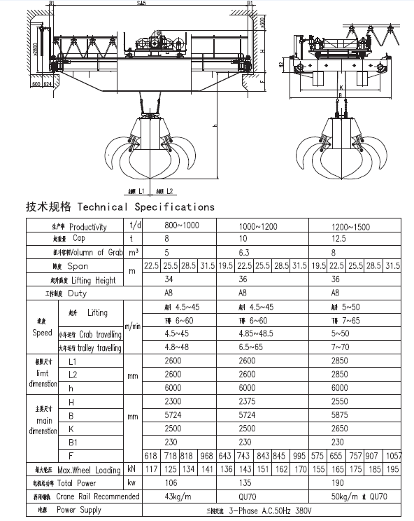 2、 我公司生產的垃圾抓斗起重機能執(zhí)行嚴格的提升及輸送作業(yè),確保垃圾焚燒發(fā)電廠的正常作業(yè)。